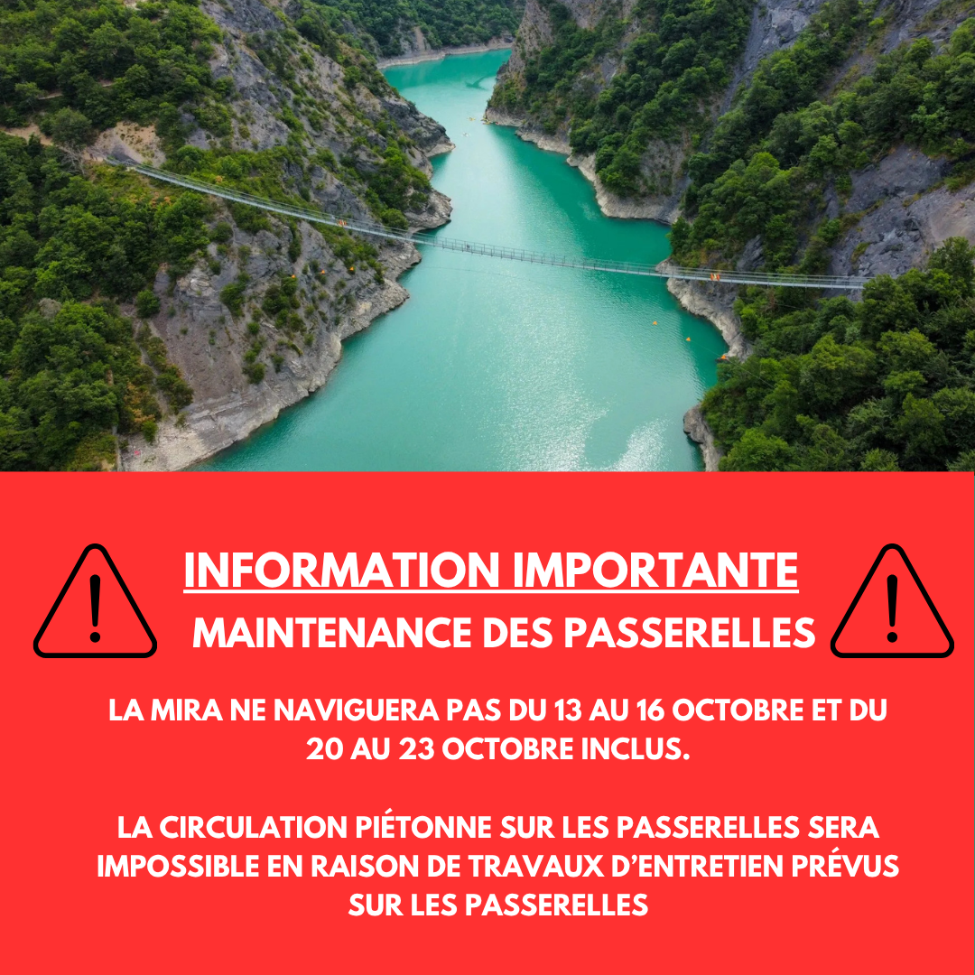 Navettes assurées du 1er mai au 27 octobre. Après cette date, la navigation est possible seulement les week-ends, si le niveau d'eau le permet.